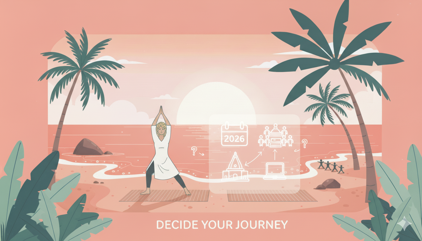Before deciding, reflect on your personal objectives. If craving inner peace or recovery, a spiritual retreat is perfect. For career ambitions or advanced practice, choose an intensive Yoga Teacher Training (YTT) for structured education and formal qualification.